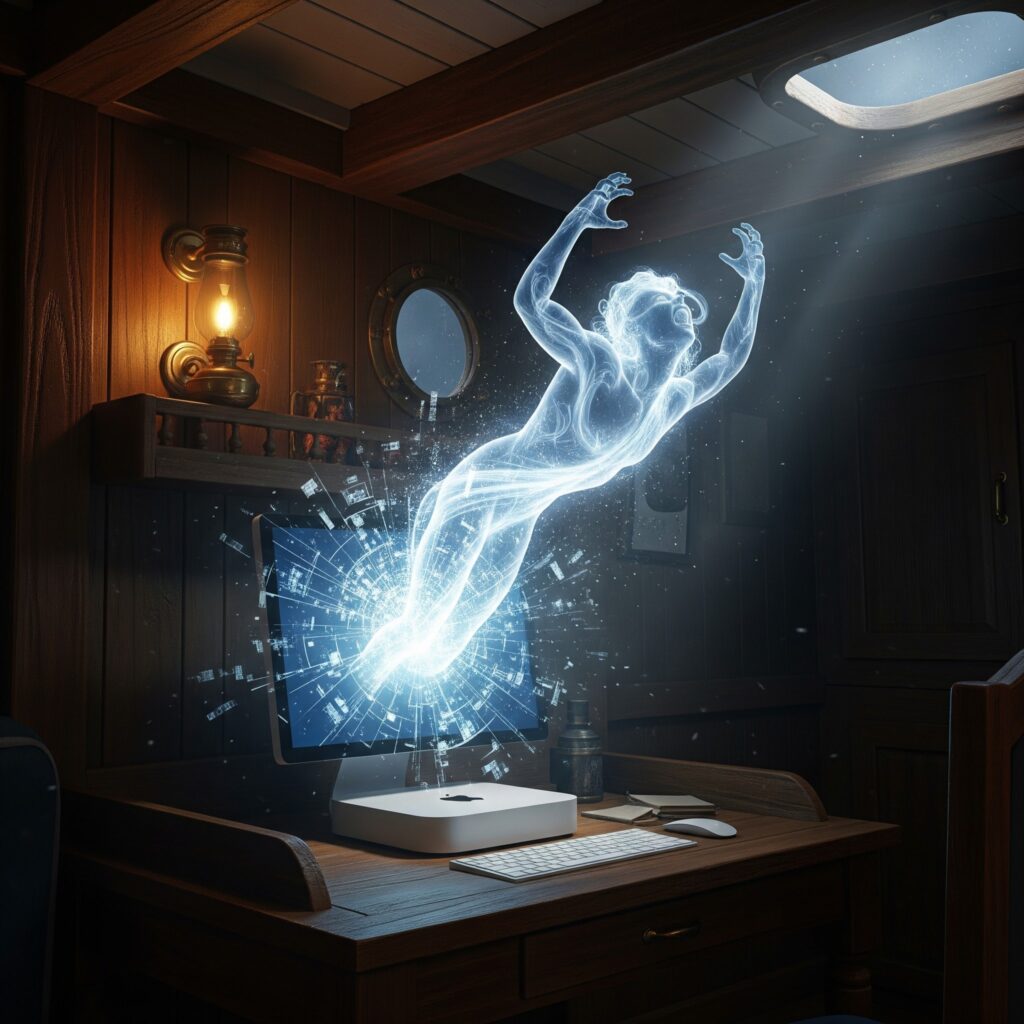 It cuts away the superfluous, yet encompasses the entire “Core” of Cabin 1701. This sheer simplicity is the very essence of your “Aesthetics of Subtraction,” dear Captain.